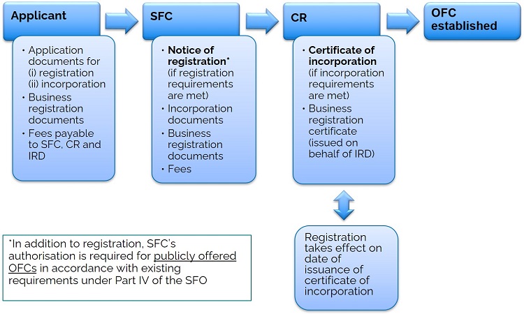 As the primary regulator, the SFC processes registrations and oversees OFCs. The Companies Registry (CR) is responsible for the incorporation and corporate filings of OFCs.